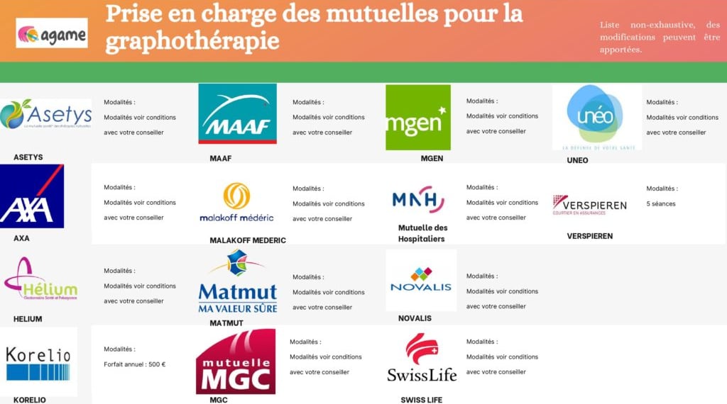 Remboursement sur présentation d'une facture par certaines mutuelles.